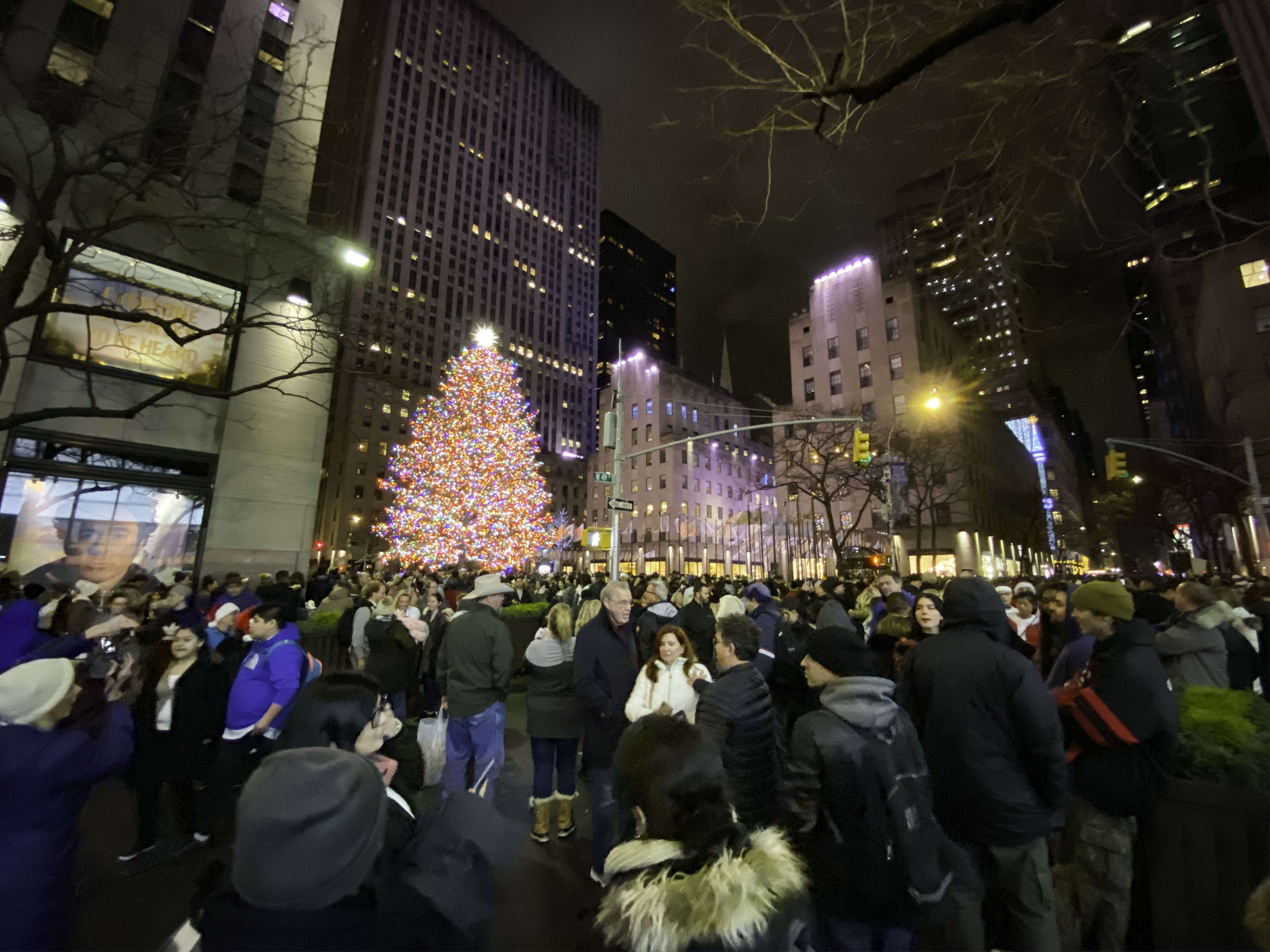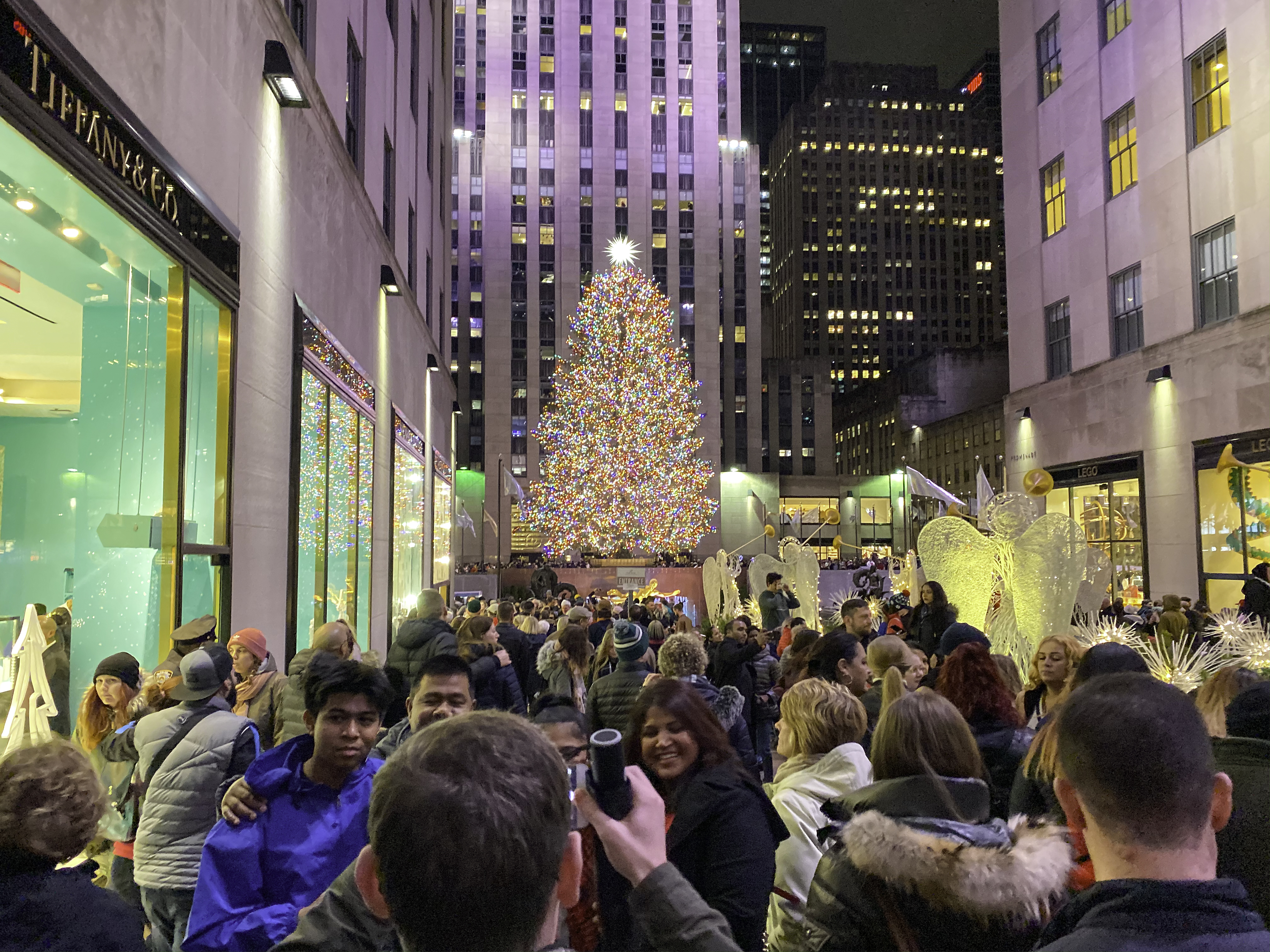While I was out in Manhattan this weekend, I thought I’d swing past Rockefeller Center to see the tree at night. Damn!