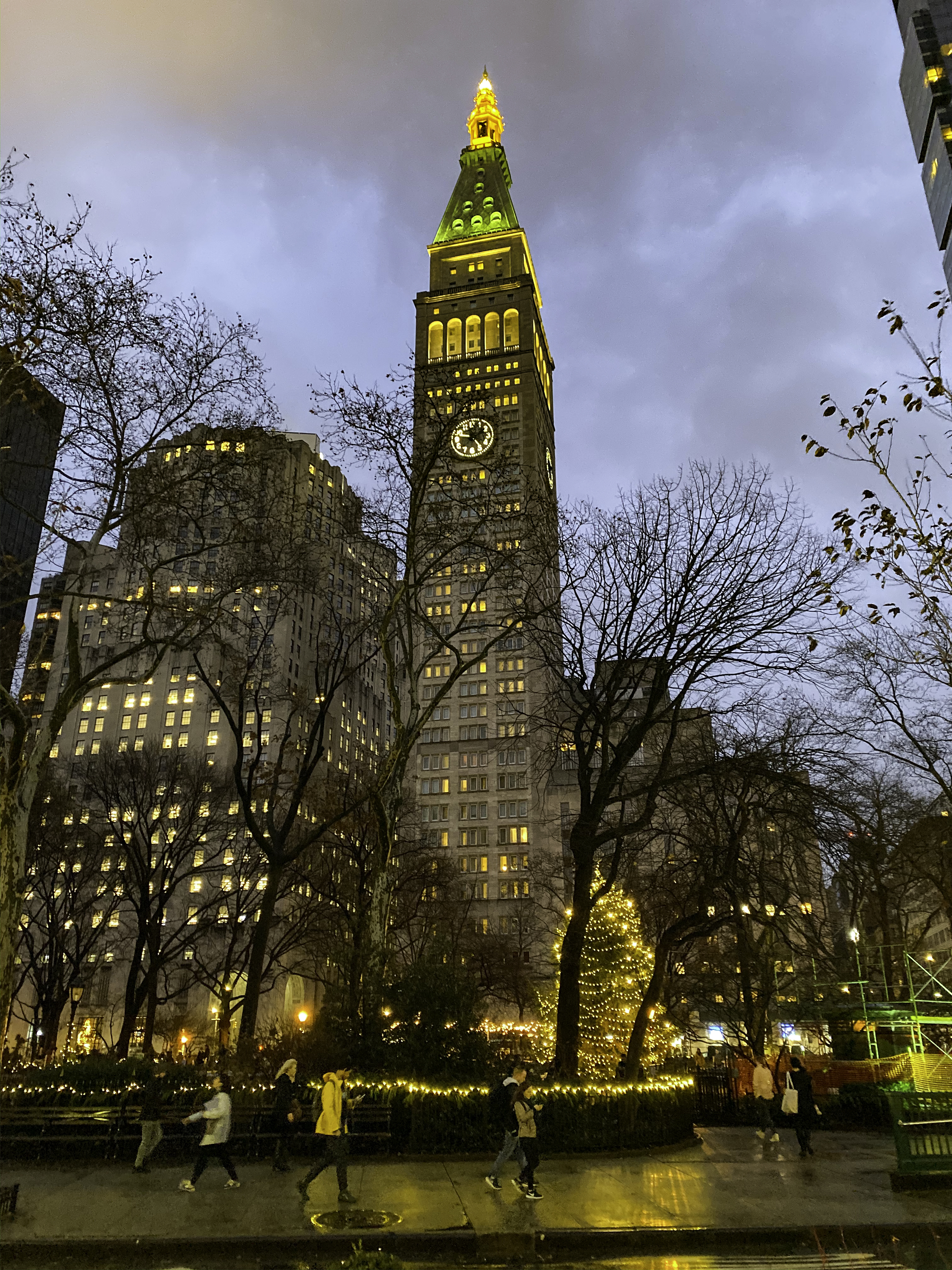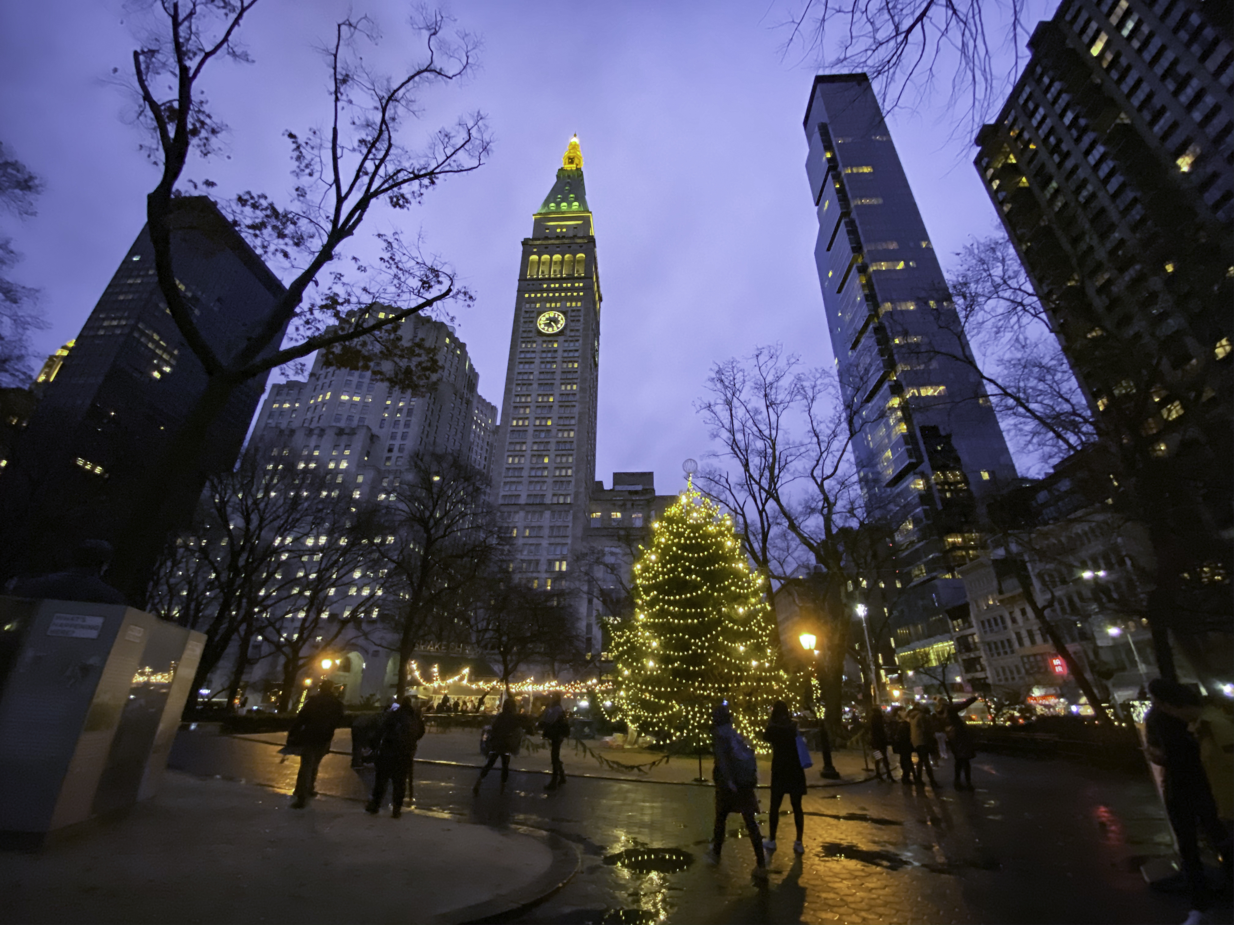 While Rockefeller Center and Bryant Park have bigger, more famous Christmas trees, my favorite in the city is perhaps the tree in Madison Square Park. It suits its Gilded Age surroundings.